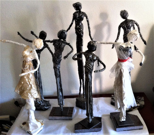 Die Skulpturen werden aus Draht, verschiedenen Materialien, Acrylfarbe mit eigener Mischtechnik in aufwendiger Handarbeit hergestellt.